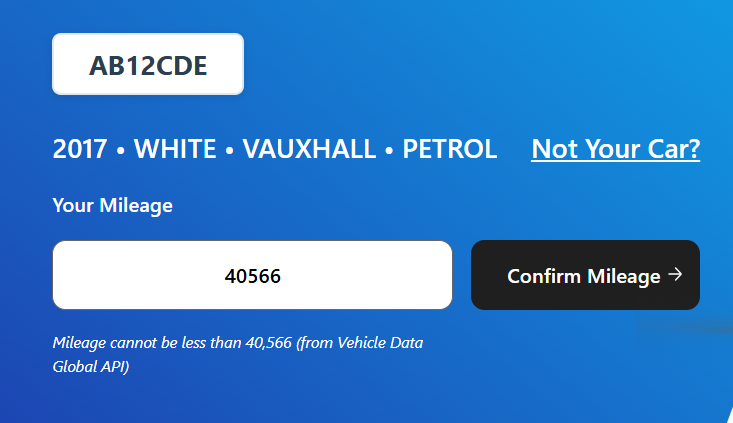 Next, you’ll review the key information about your car — such as make, model, fuel type, and age. If anything needs updating (like mileage or modifications), you can edit the details before moving on.